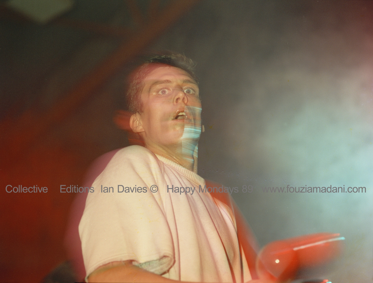 I was fortunate to work with the Happy Mondays during the 'Rave On' 1989 tour that pretty much brought them the international recognition they deserved, after the many years they had been building their sound and local following. The lead singer Shaun Ryder and his younger brother, Paul, had been old school friends of mine from early primary and right through secondary school’s and from one chance meeting, a few years after finishing school, with Paul in local Manchester club, the Boardwalk, I was suddenly getting the opportunity to document what turned out to be one of the biggest bands to come out of Manchester on their breakthrough tour. They rehearsed for the tour at the old CIS insurance building and seemed to spend most of their time playing football in the large hall. The thing I remember most about this time is when you were on the stage and the thumping bass of ‘Hallelujah’ ‘Wrote For Luck’ and my favourite ‘Step On’ were all being performed, hearing the original early sound was just the most unbelievable experience.