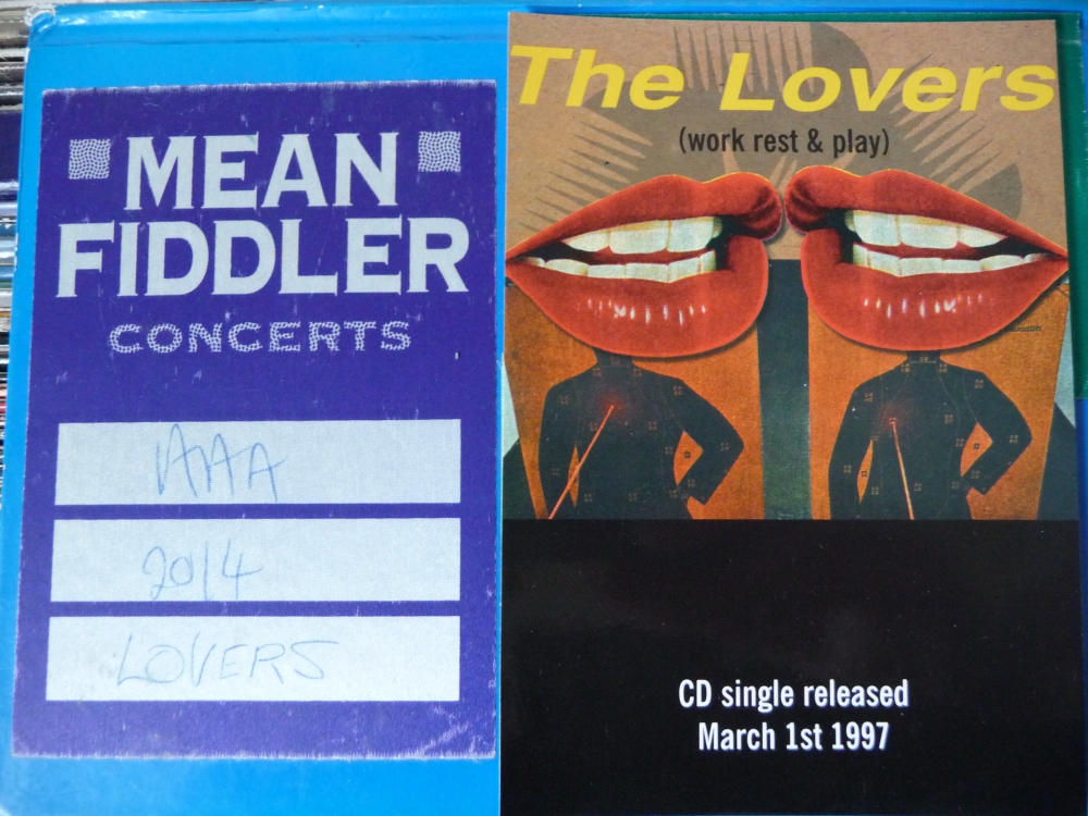 Backstage Pass for The Lovers gig at London Mean Fiddler on 20th April 1997 as part of the benefit concert for Rock The Dock (Liverpool Dockers) in which a CD album was also released by Creation Records that included most of the top indie bands at the time. The Lovers contribution was the song Transparent, which featured Tom Hingley on vocals and Jerry Kelly (Lotus Eaters) on guitar.