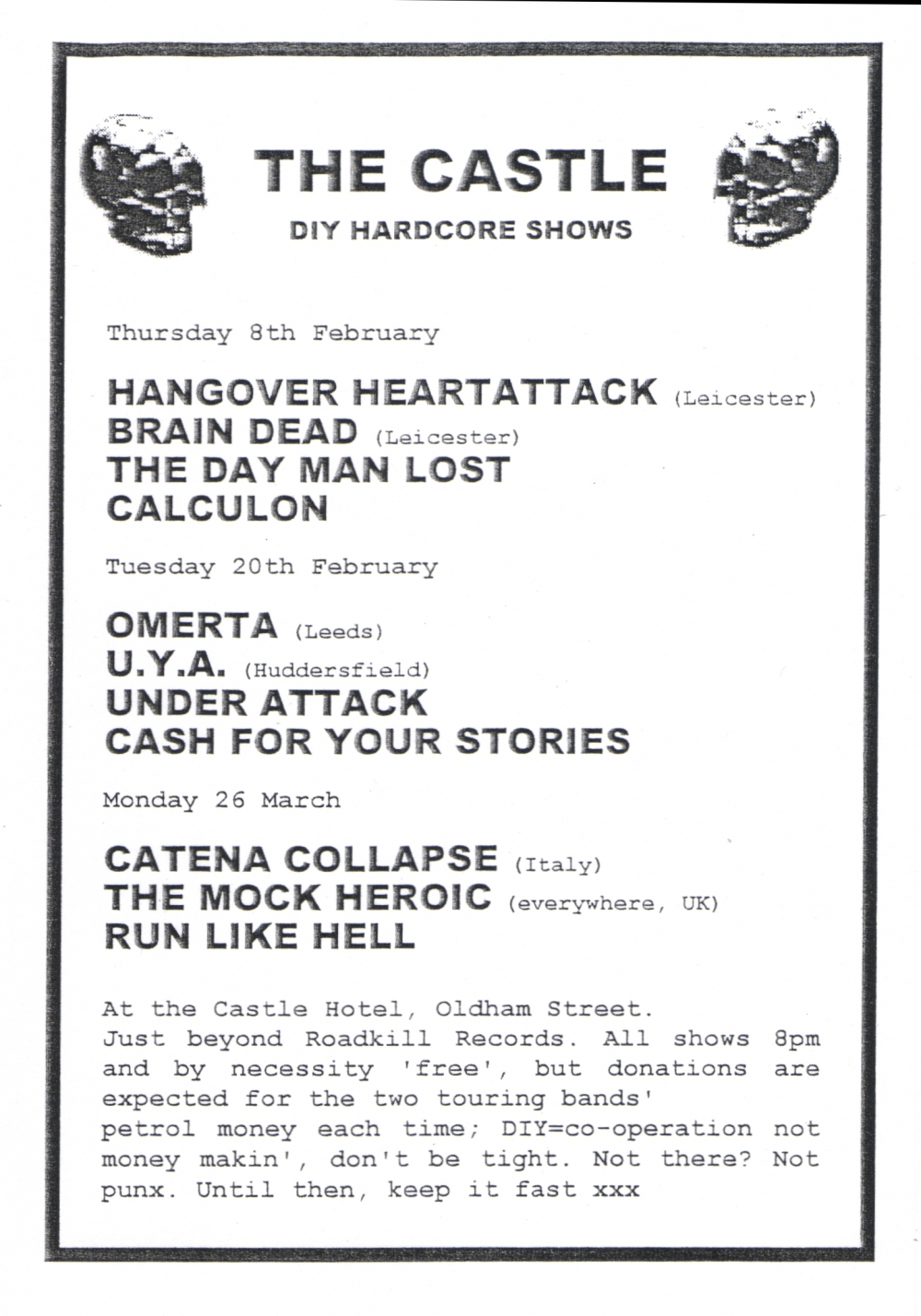 Before the Castle was 'nice' again, there was a short period where there were loads of punk and hardcore gigs in the back room. Some info on the Manchester bands :