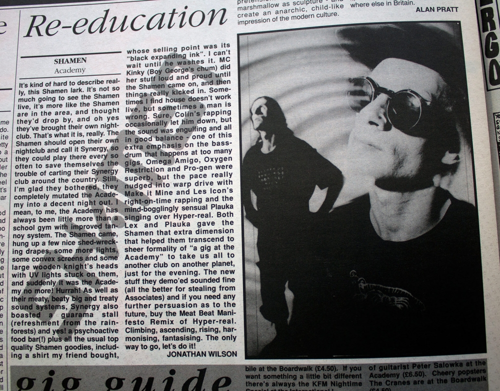 The Shamen brought their Synergy show to the Academy on a Thursday night in April 1991 and achieved something magical by performing house music live - that's no mean feat and they did it brilliantly, whilst transforming the Academy into a throbbing nightclub with the aid of decoration and carnival stalls.