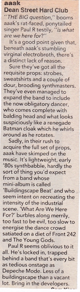 Live review of Aaak in London, Sounds 24th March 1990