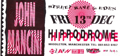 Flyer for John Manchini at the Hippodrome, 13 December 1991.