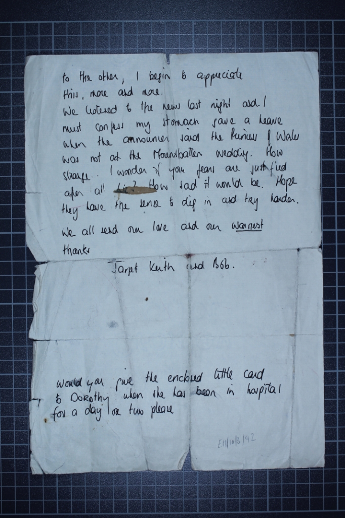 More royal gossip! This time in our Elizabeth Harwood collection as Dame Janet Baker remarks on the absence of the Princess of Wales from the recent wedding (Anne, Charles, Andrew? No idea.)