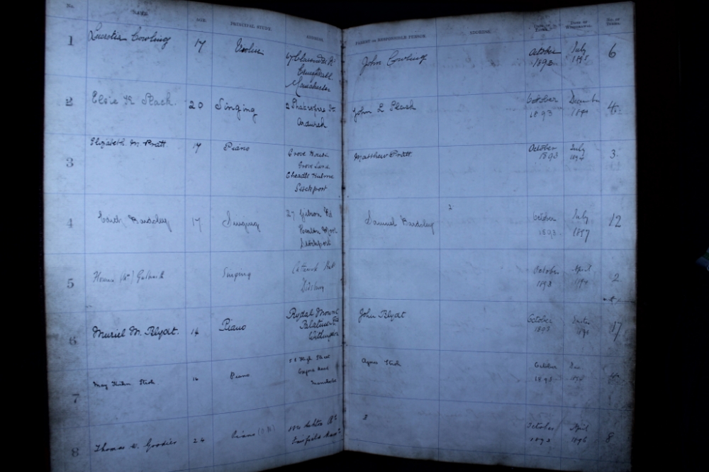 Entries in the Royal Manchester College of Music student register. I love that it's in everyone's own handwriting. Recognise any family names? Contact the RNCM Archives to see if we have any more information!