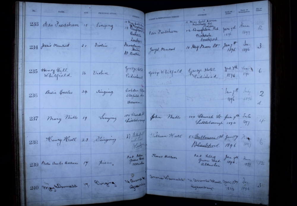 Entries in the Royal Manchester College of Music student register. I love that it's in everyone's own handwriting. Recognise any family names? Contact the RNCM Archives to see if we have any more information!