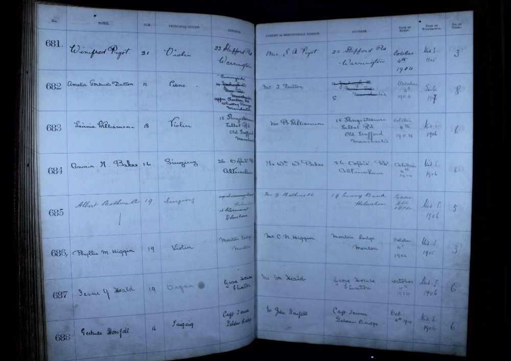 Entries in the Royal Manchester College of Music student register. I love that it's in everyone's own handwriting. Recognise any family names? Contact the RNCM Archives to see if we have any more information!