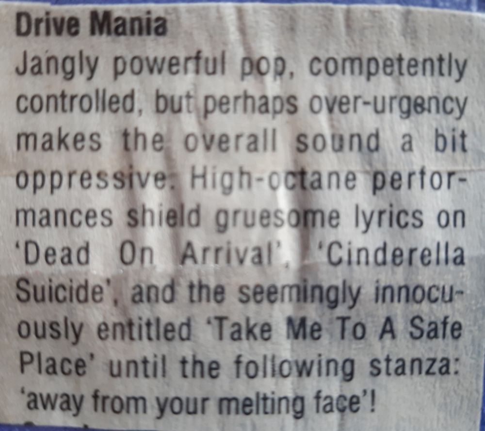 City Life, Drivemania demo tape review, 29th Sept 1993