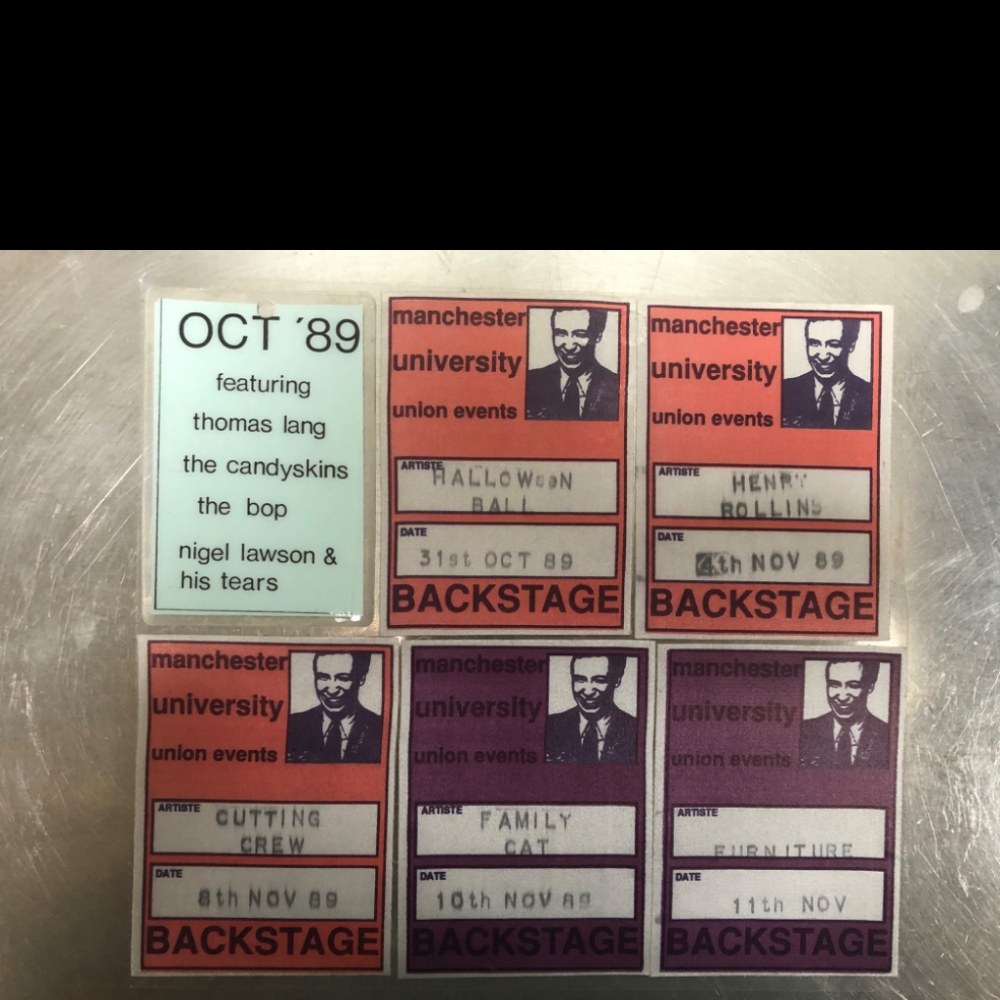 Variety of backstage passes from mid 80s onwards from Manchester university and academy