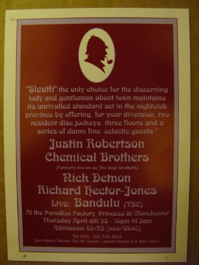 Justin Robertson and the newly renamed Chemical Brothers (they changed their name from "The Dust Brothers" during their US tour from which they had only just returned).