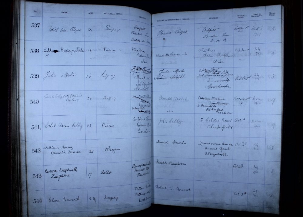 Students from the ninth year of the Royal Manchester College of Music in its early years.