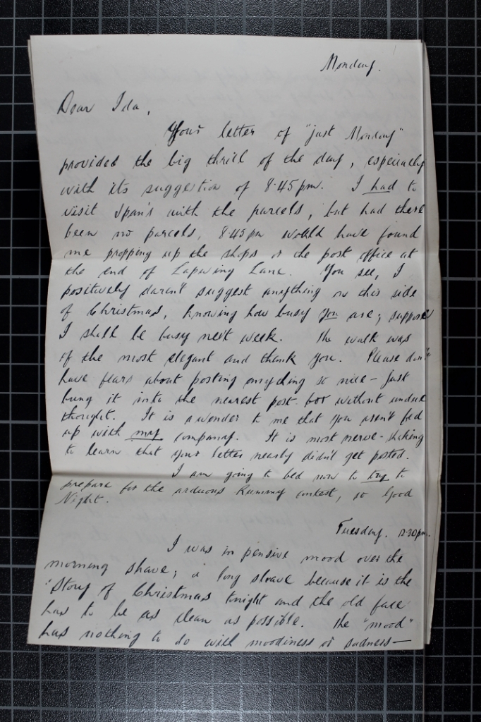 He shares some whimsical verse and explains that he would "easily walk Didsbury way on Dec 25th evening if you are attending evening service" to meet up. He invites her to the cinema in the new year.