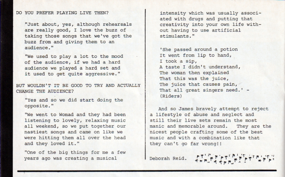 James interviewed by Deborah Reid for issue 3 of M62 magazine.