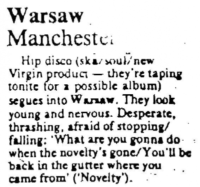 Electric Circus 2/10/77 Jon Savage review in Sounds. Published 15/10/77
