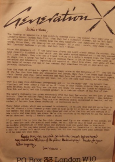 Couldn't get into a Generation X gig at Rafters so me and my friend Karen complained to 'their people' and this is the response