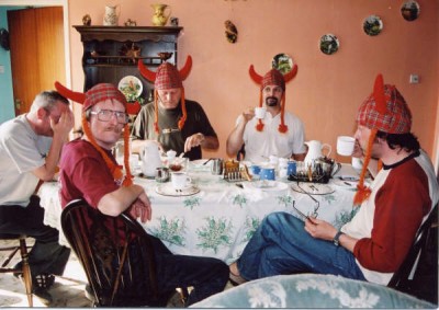 Stockport's premier 'beat' combo enjoying breakfast at Mona's B&B in Kirkwall (apart from the microwaved bacon but what the hell, we were still drunk from the previous nights after gig de-brief and Highland Park single malt tasting session!).