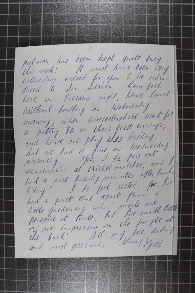 Griff hopes this letter reaches Ida before she leaves (for holiday/work trip) but maybe not, he's got caught up in watching the cricket and attending the chess competition.