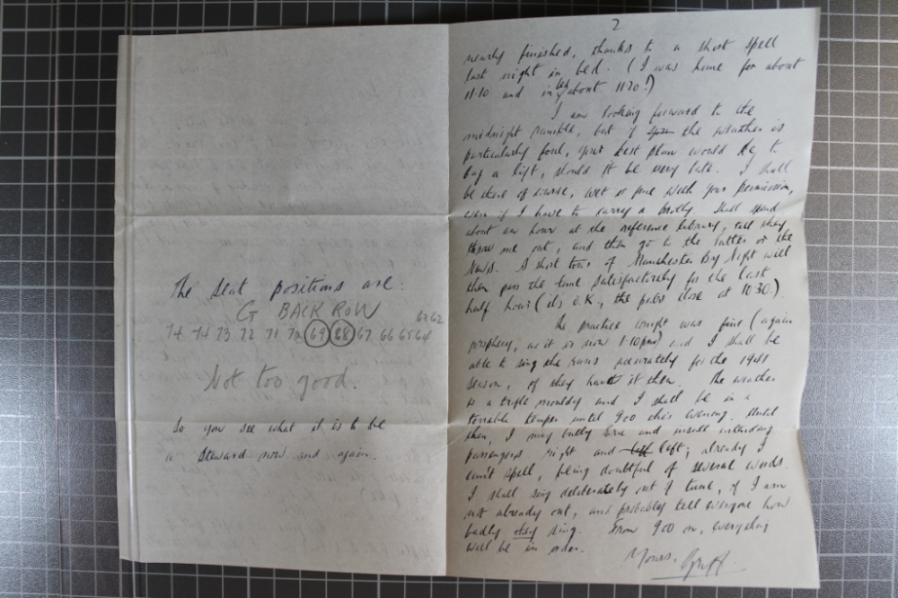 He's already congratulating her on her win at cards which has yet to be played and prophesises that the choir practice tonight will go fine. He'll spend some time in the library this evening then on to the cinema and then "a short tour of Manchester By Night will pass the time satisfactorily for the last half hour" before he meets her for "the midnight ramble."