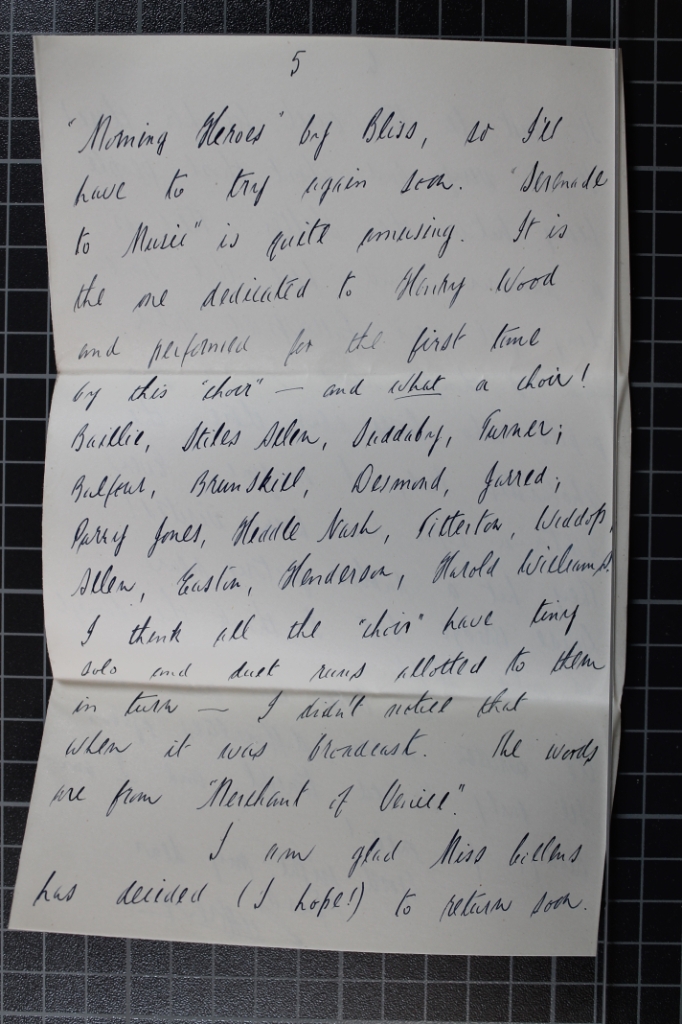 Griff writes to Ida recalculating their past time, cinema-going, in response to war activity. "No, definitely not the Capitol, now that the enemy are paying so much attention to South Manchester. We shall have to hold a quick council of entertainment!"