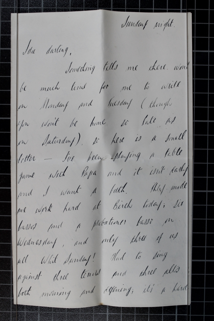 Griff has been working hard in the choir at Birch, he tells Ida. They're all booked up for members but sometimes he ends up doing a wee bit more work than usual as a bass singer, he "had to sing against three tenors and three altos both morning and evening." There were quite a few mistakes in the singing so much so that "the morning anthem gave me the shudders" and "your father would have had a pink fit" were he still choir master.