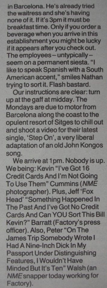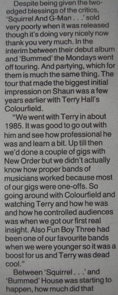 This is an article in the NME about the Happy Mondays, and it includes Shaun Ryder, Paul Ryder, Bez, The Hacienda, and G-MEX.