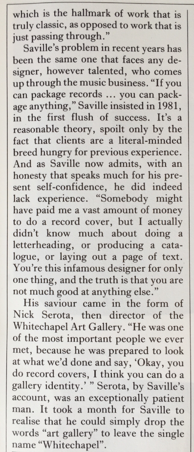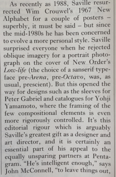 This is an article from the November 1990 issue of Blueprint magazine, about Peter Saville.