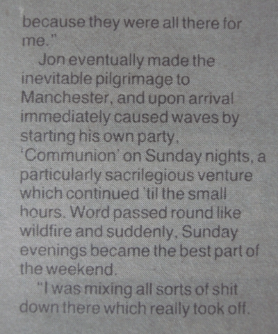 This is an article from the NME about Jon Da Silva, and it includes Mike Pickering, The Hacienda, and Rowetta.