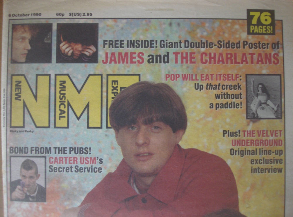 This is the front cover of the NME, and it includes Happy Mondays, James, The Charlatans, and New Fast Automatic Daffodils.