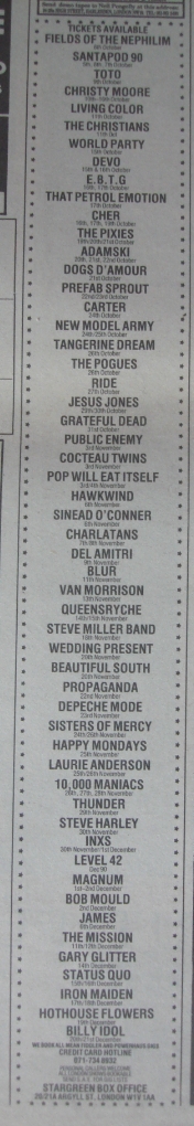 This is an advert from the NME and it includes James, Happy Mondays, and The Charlatans.
