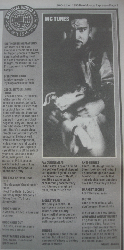 This is an article from the NME, about MC Tunes.