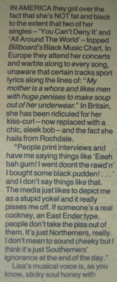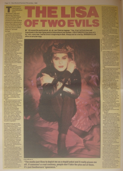 This is a full page article from the NME about Lisa Stansfield, and it includes The Blue Zone.