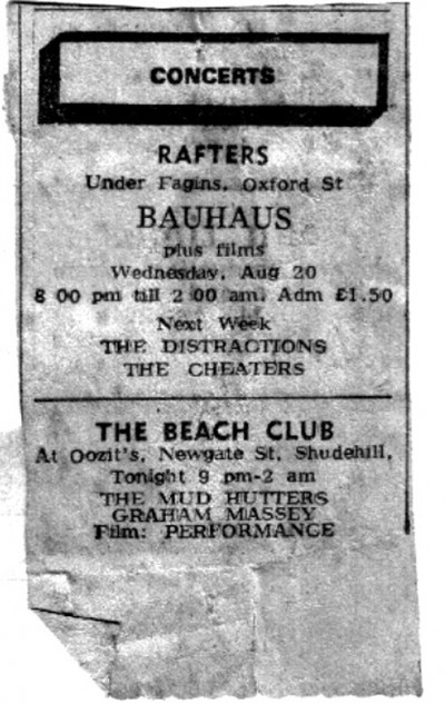 Mudhutters doing tribalism and Graham Massey in the form of The Beach Surgeon. Meanwhile over at Rafters its Bauhaus