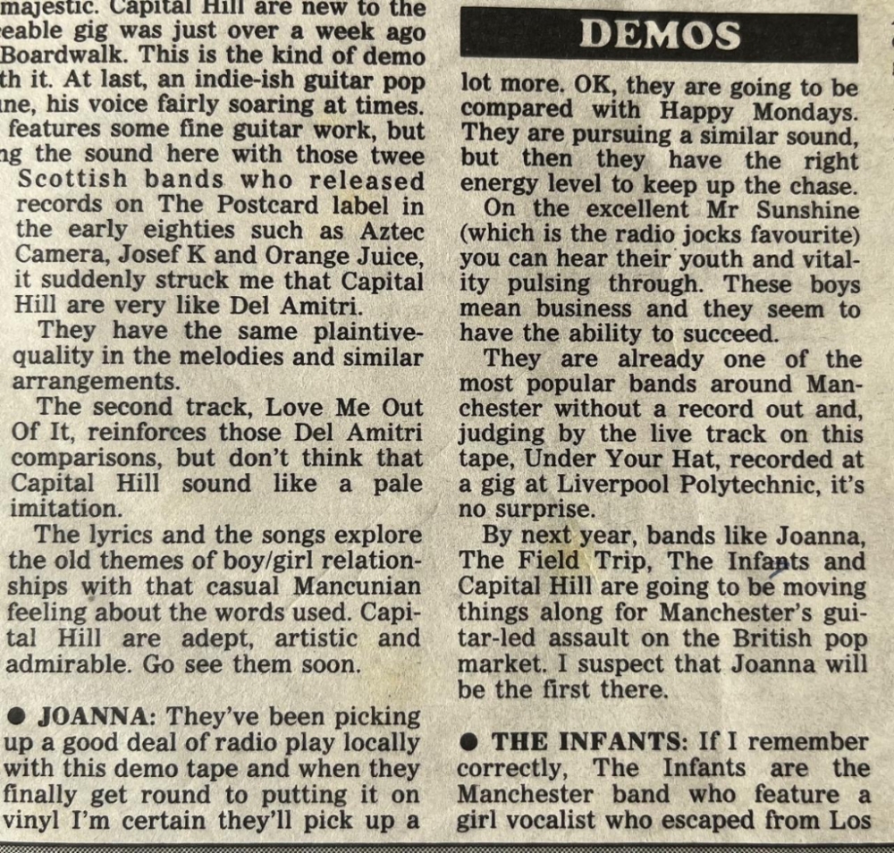 Demo review by Terry Christian in the Manchester Evening News from 1990.
