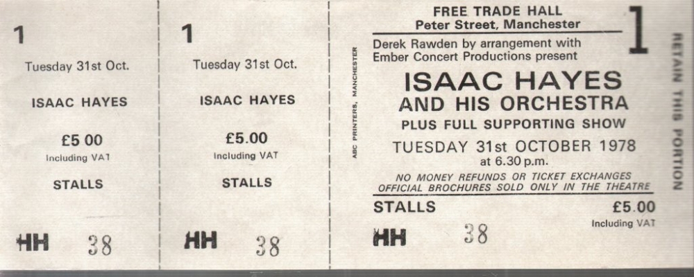 Issac Hayes & his Orchestra - Ticket. Manchester Free Trade Hall.