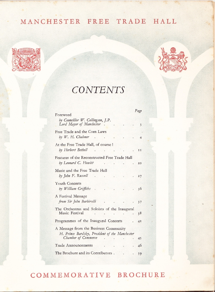 MANCHESTER FREE TRADE HALL 1951 Re-Opening Commemorative Brochure