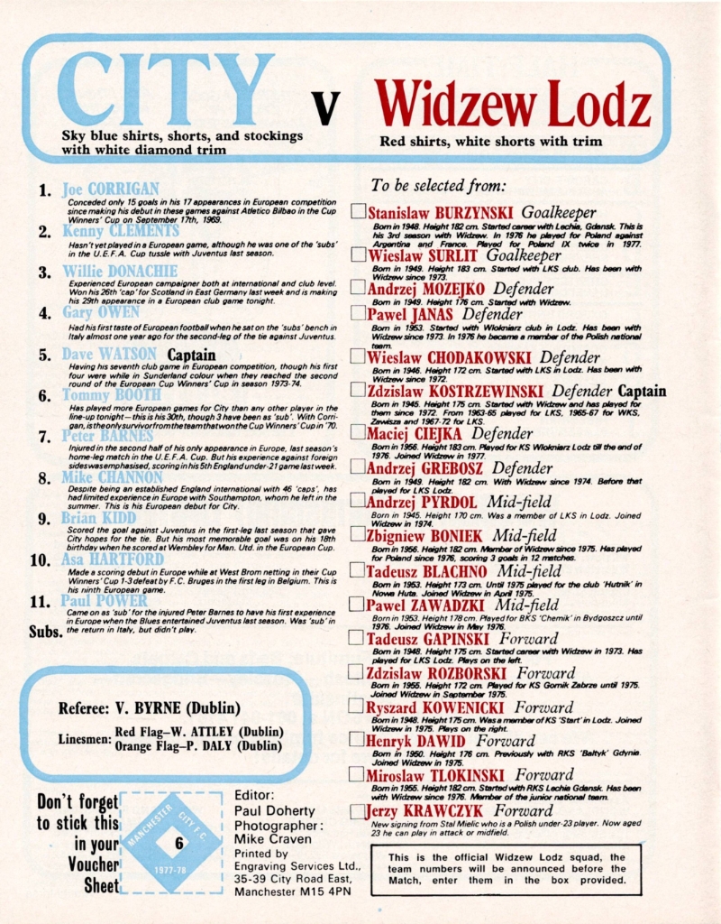 UEFA Cup 1st Round 1st Leg Manchester City v Widzew Lodz