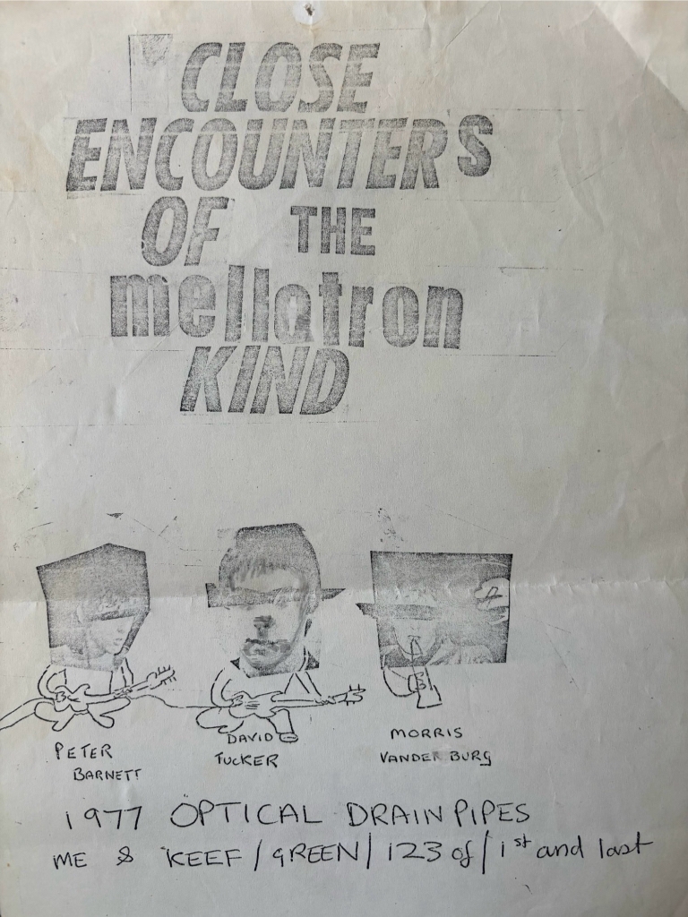 Homemade Mellatron flyer / poster. Multiple photocopies used in 1977 as a poster for gigs (we would write onto this the pub venue and date of the gig etc).