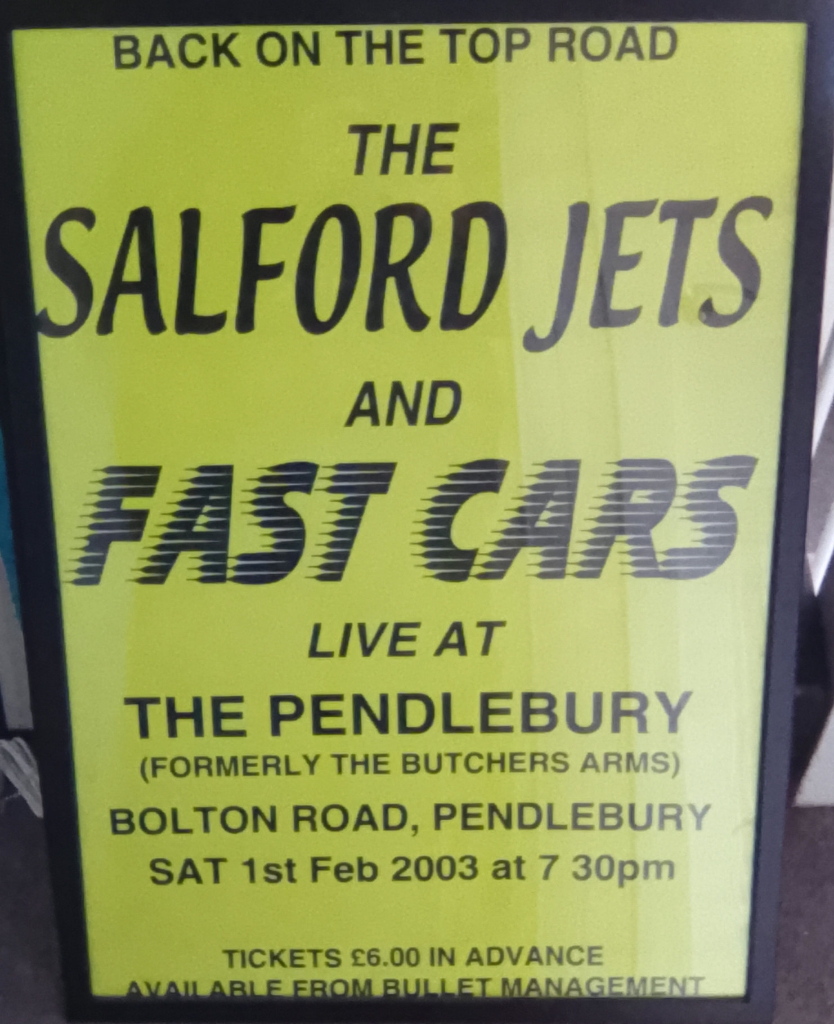 Poster for a gig with Salford Jets and Fast Cars at The Pendlebury 1st February 2003.