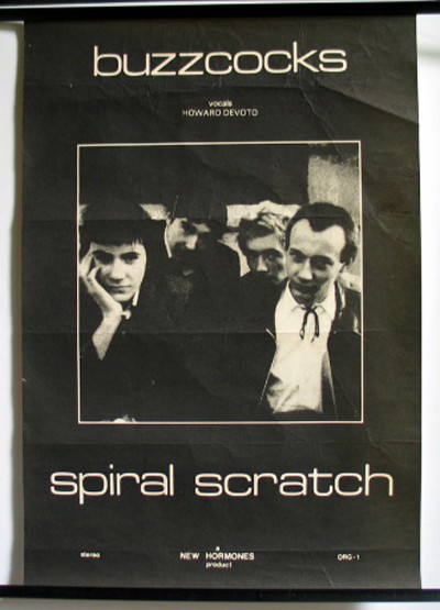 A poster for the re-issue of Spiral Scratch (note the 'vocals howard Devoto who by this time had left to form Magazine).