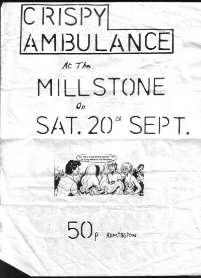 Flyer for Crispys at the Millstone Pub Thomas st MCR