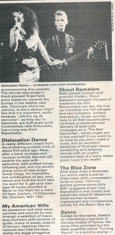 From City Life 35, July ’85; reviews of demos from the “Pop” section. The Blue Zone, featuring one Lisa Stansfield. Remember her as a presenter on a kiddies programme; accents like that were memorable as they were few and far between on the telly back then. Other bands reviewed on the page:- A.C.R. “Wild Party” 12”, they seemed to have released an inordinate amount of records....