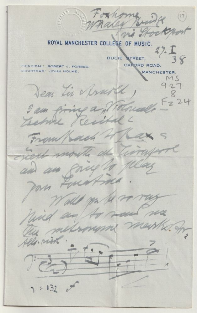 Correspondence, photographs, programmes and cuttings, music and a recording, autograph book and scrapbooks belonging to the cellist Carl Fuchs.
