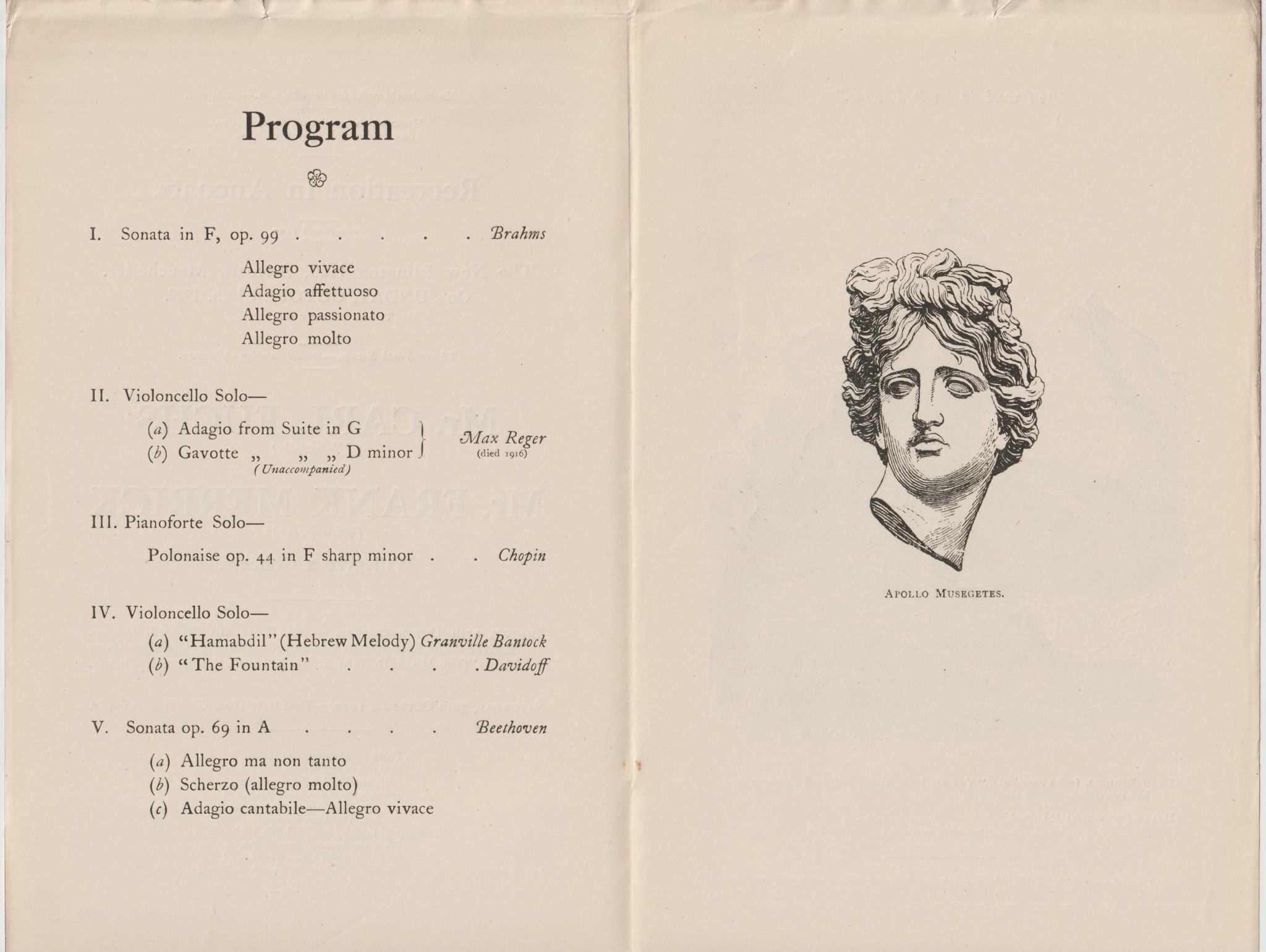 Carl Fuchs (1865-1951) was born in Germany and moved to Manchester to teach and perform in Manchester in the late 20th century. Lead cellist at the Hallé, teacher of the cello at the Royal Manchester College of Music, and part of the famous Brodsky Quartet.