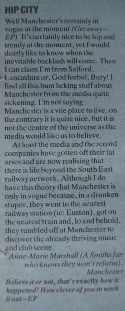 808 State, A Certain Ratio, Buzzcocks, Happy Mondays, Inspiral Carpets, Jilted John, Jon the Postman, Joy Division, Simply Red, The Smiths, The Stone Roses, Morrissey, The Fall, Tony Wilson, Martin Hannett, Factory Records
