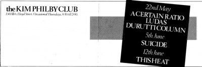 Band On The Wall, Free Trade Hall, International 2, Green Room, The Apollo, The Boardwalk, Rotters, International 1, The Venue (Whitworth Street West), Legend, The Gallery, The Swinging Sporran, Quaffers, Wigan Pier, Jilly's Rockworld, The Asylum, 42nd Street, Devilles, The Hacienda, Fagin's