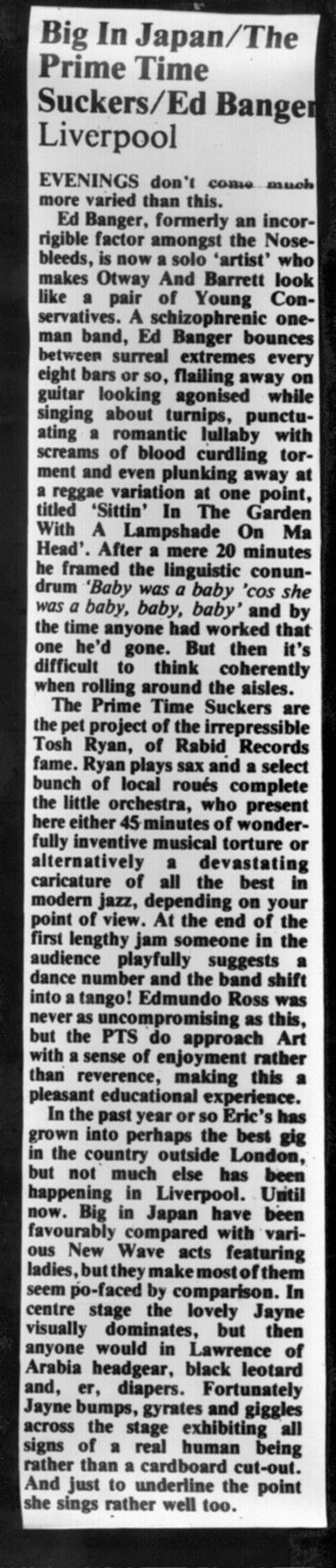 The Durutti Column, Gyro, Jilted John, John Cooper Clarke, Manicured Noise, Prime Time Suckers, Ed Banger